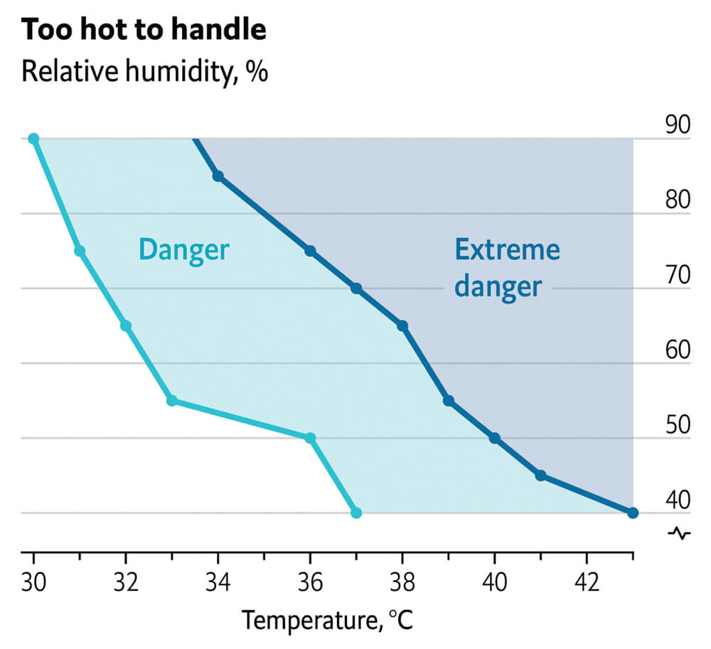 dangerous to humans, as is a temperature of 40°C with 50% humidity. Vast